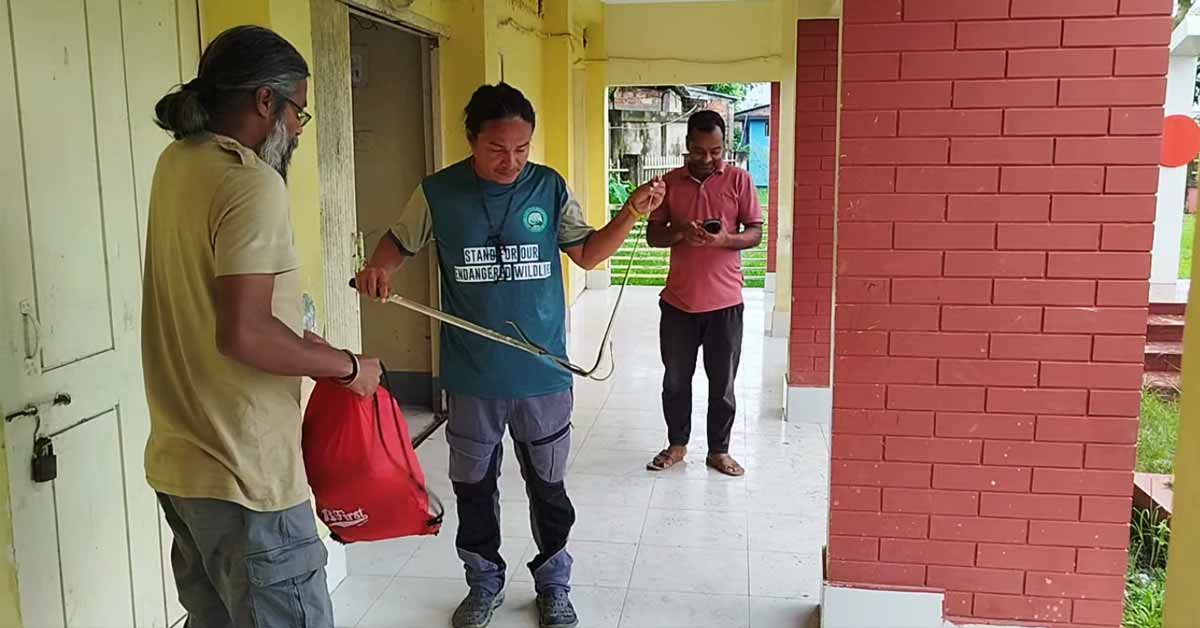 সাপ উদ্ধার করছেন সিউ কো-ফাউন্ডার খোকন থৌনাউজাম ও সোহেল শ্যাম। ছবি- আই নিউজ
