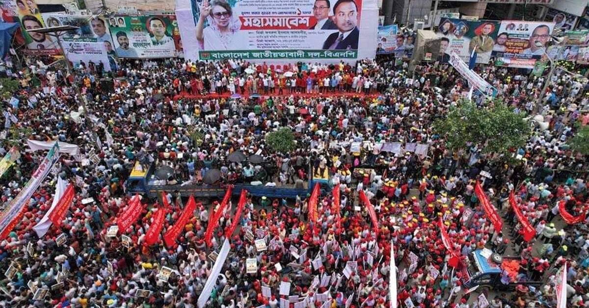 বেলা ২টার পর আনুষ্ঠানিক সমাবেশ শুরু হলেও সকাল ১০ টার পর থেকে নয়াপল্টন সমাবেশস্থলে আসতে শুরু করেন বিএনপি নেতাকর্মীরা। বেলা বাড়ার সঙ্গে-সঙ্গে নেতাকর্মীদের উপস্থিতি নয়াপল্টন ছাড়িয়ে ফকিরাপুল ও নটরডেম কলেজ পর্যন্ত পৌঁছে যায়। আর অন্যদিকে শান্তিনগর, মৌছাক, কাকরাইল মসজিদ, সেগুন বাগিচাসহ বিজয় নগর কালভার্ট রোডে ছড়িয়ে পড়েন বিএনপির নেতাকর্মীরা।