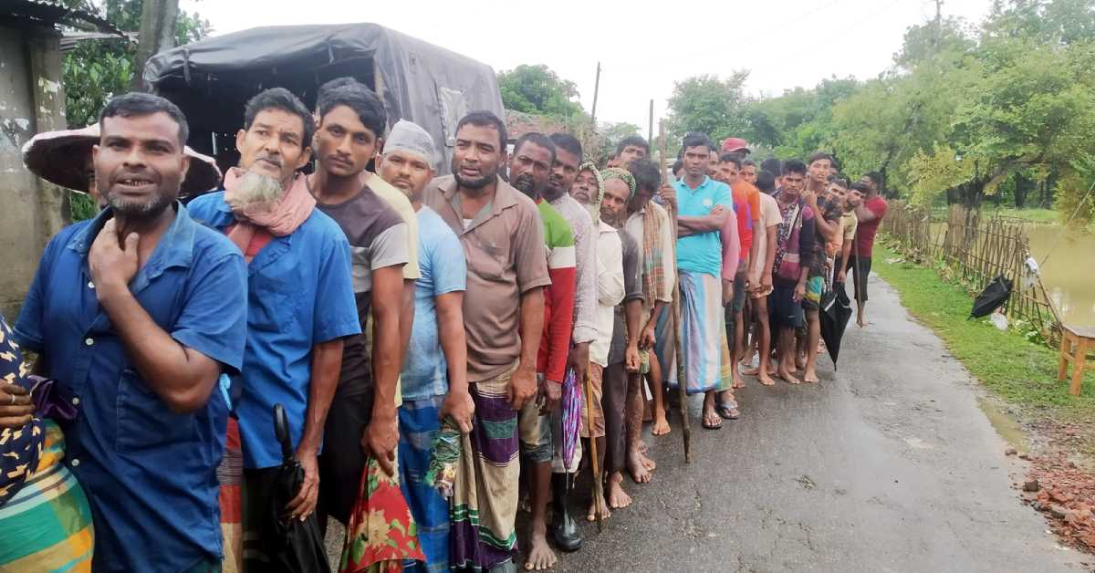 উদ্বেগ আর উৎকণ্ঠা নিয়ে নদীর বাঁধ রক্ষায় সতর্ক পাহাড়া দিচ্ছেন মৌলভীবাজারের বাসিন্দারা।