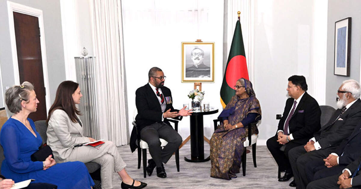 লন্ডনের ক্ল্যারিজ হোটেলে প্রধানমন্ত্রী শেখ হাসিনার সঙ্গে ব্রিটিশ পররাষ্ট্রমন্ত্রী জেমস ক্লেভারলির সৌজন্য সাক্ষাৎ/ছবি- সংগৃহীত