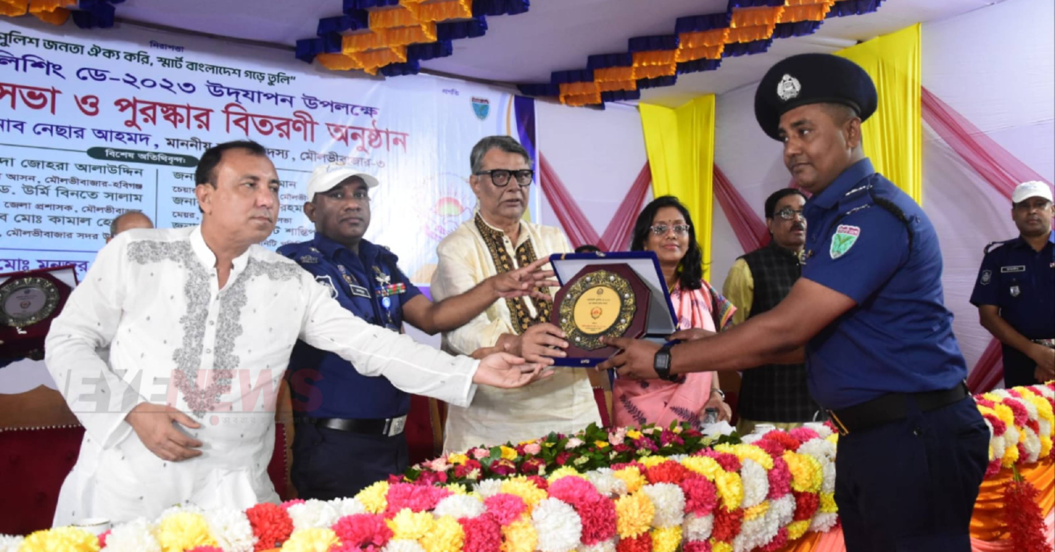 শ্রেষ্ঠ কমিউনিটি পুলিশিং সদস্য নির্বাচিত হয়ে পুরষ্কার গ্রহণ করছেন প্রাণেশ ঘোয়ালা। ছবি- আই নিউজ
